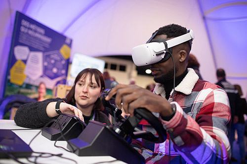 Automobile, transport, logistique et services… Découvrez sur tablette les 4 familles de métiers « Mobilités », à travers une balade urbaine en réalité virtuelle. Grâce aux casques VR, suivez le quotidien d’un cariste, un responsable logistique, un ambulancier, un chef d’équipe, un responsable d’atelier… et partez à la découverte de 20 métiers du transport et de la logistique. Armés de votre smartphone, jouez au Quizz Mobilités, les métiers du transport, de la logistique et des services de l’automobile n’auront plus de secret pour vous !