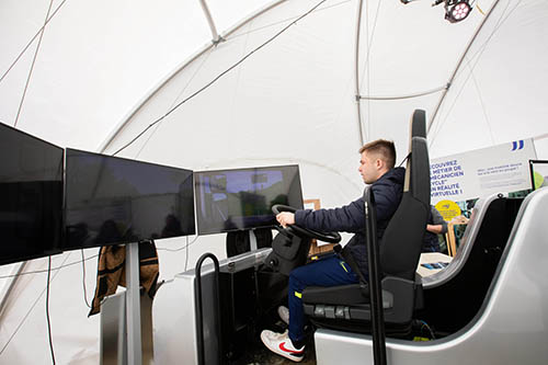 La conduite de véhicules hors normes vous tente ? Testez le simulateur de conduite de poids lourds et de cars, une plateforme mobile reproduit les mouvements d’accélérations.